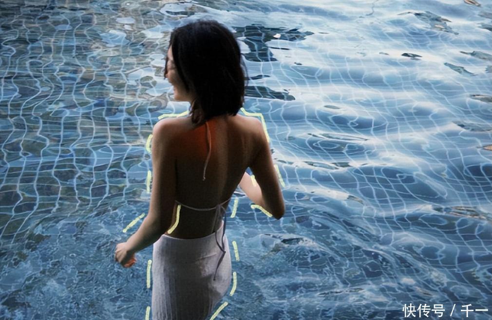 刘亦菲在《玫瑰的故事》中身穿蓝色连体泳装,匀称的形体被赞“瘦而不柴”,臀腿线条当然满盈,以至因泳衣过紧勒出赘肉,反而被不雅众招供为“健康好意思的典范”。