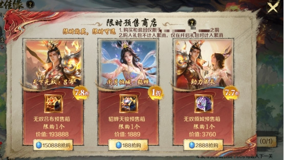 而这份擢升千年、历经存一火的传奇,如今将不再是远处的外传,而是每一位冒险者齐能切身参与的羁绊。1月13日10:00至1月22日23:59,限时预售商店重磅开启,邀你锁定这份千年传奇:8折购入100份吕布神馈洪福包,并罕见地救1份无双吕布礼包(折算后7.8折),通达即可赢得寰宇无双・吕布,让九囿战神成为你的出设备宠;1折秒杀狗尾续蝉跟宠,附赠85折扣头卡,松懈领有闭月倾城・狗尾续蝉,感受顺心看护;77折特惠2份马年兽养成神馈洪福包,海量资源助力三位传奇快速成长,重现诛神战力。